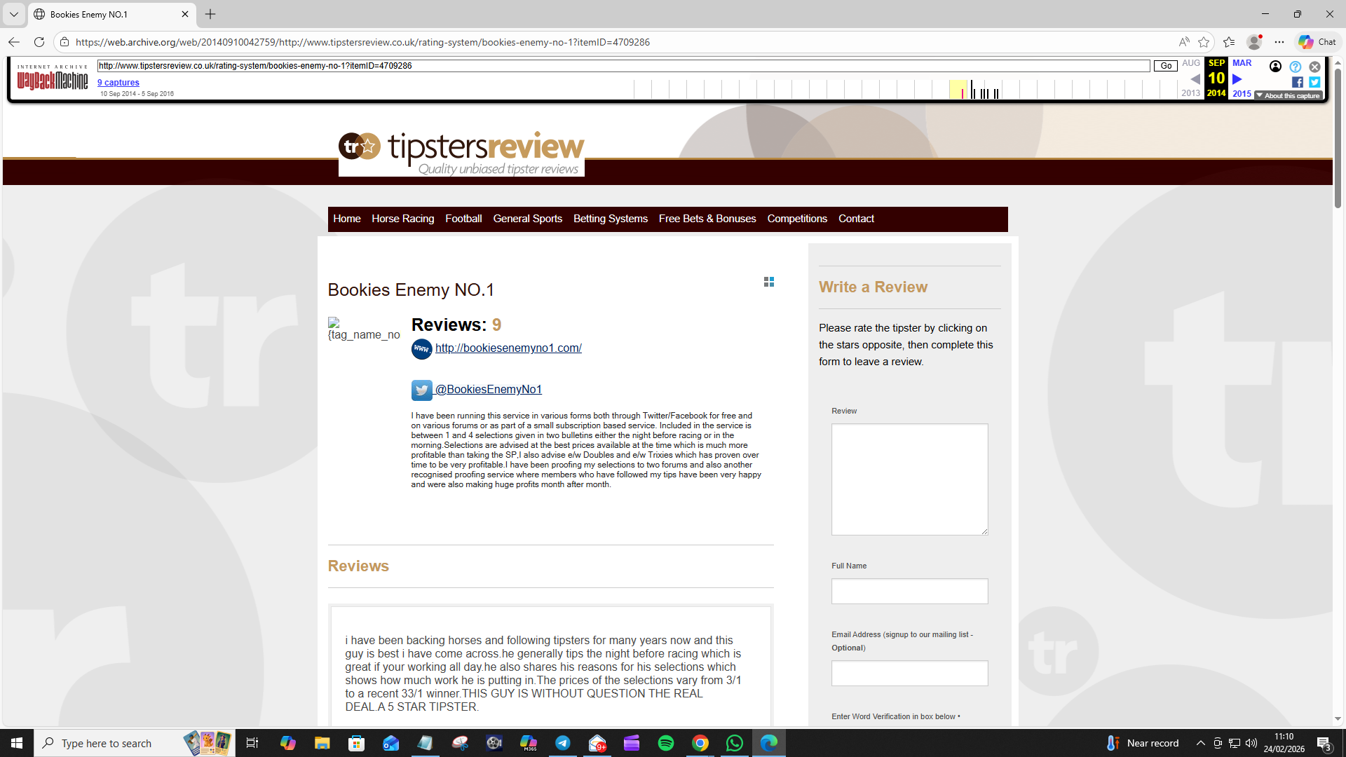 Since those early reviews first appeared on Tipsters Review in 2014, feedback has continued steadily through to the present day. In total, there are now well over 200 independent reviews covering the history of the service across both archived platforms and modern review sites.