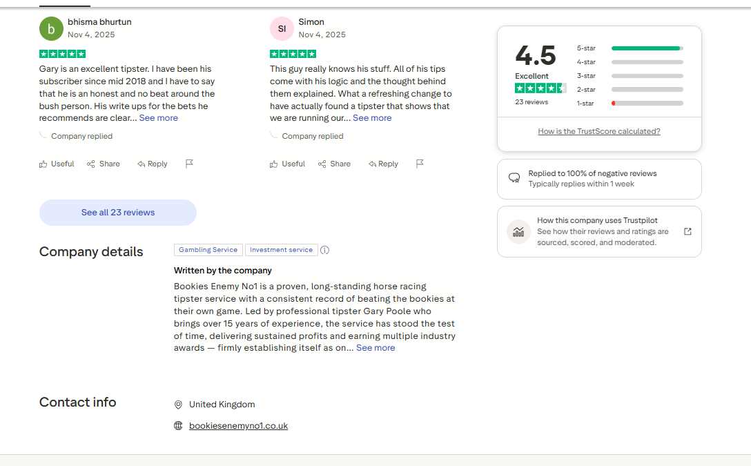 Over the years people have left feedback about Bookies Enemy No1 on a number of independent review sites and forums.